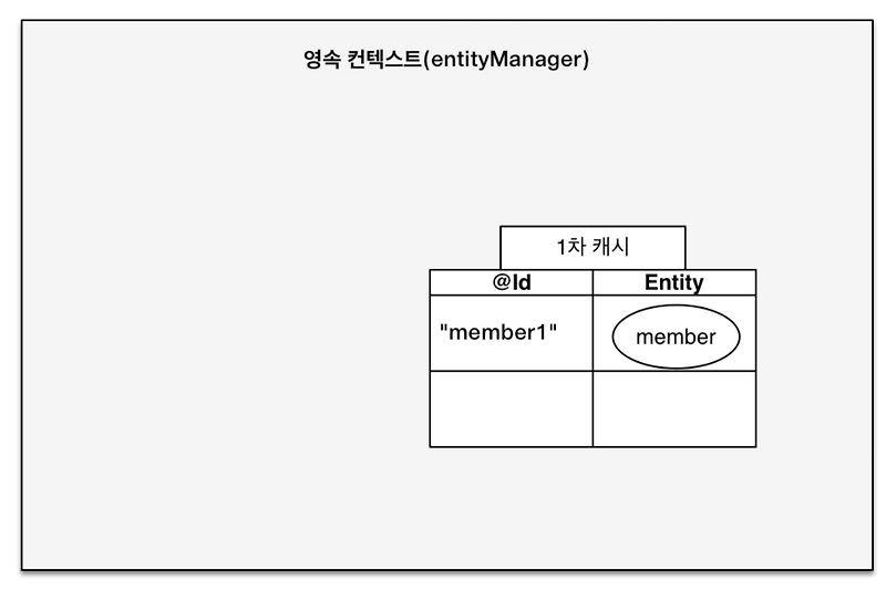 em.persist(member)를 실행하면 1차 캐시에 회원 엔티티를 저장한다. (아직 데이터베이스에 저장X)